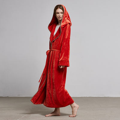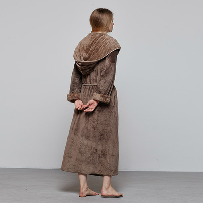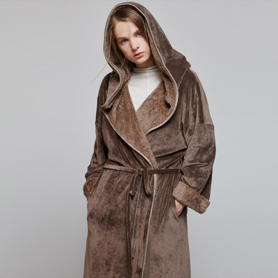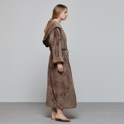 Hoa nở bộ đồ ngủ coco nữ mùa thu và mùa đông san hô lông cừu trùm đầu dày phần dài tay áo choàng ấm áo choàng tắm dịch vụ nhà áo ngủ 2 dây