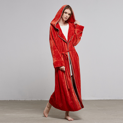 Hoa nở bộ đồ ngủ coco nữ mùa thu và mùa đông san hô lông cừu trùm đầu dày phần dài tay áo choàng ấm áo choàng tắm dịch vụ nhà áo ngủ 2 dây Night Robe