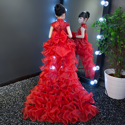 Hoa sinh nhật cô gái trang phục piano dài đuôi đỏ cô gái chủ nhà catwalk đám cưới công chúa váy trẻ em - Váy trẻ em quần áo trẻ em cao cấp