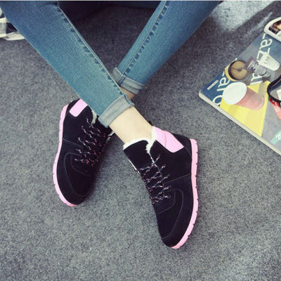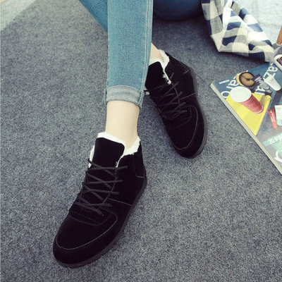 Học sinh mùa đông nữ 2017 mang giày cao cổ dễ thương Giày nữ mùa đông nữ phẳng mùa đông Hàn Quốc cộng với giày nhung giày boot nữ cổ thấp