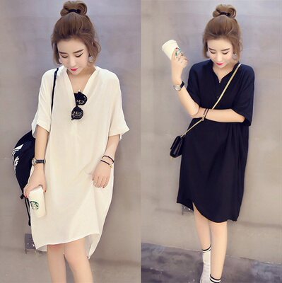 Hồng Kông đường phố thương hiệu mùa hè mới rộng dài voan màu rắn áo đầm rộng kích thước lớn phụ nữ mỏng hoang dã - váy đầm chân váy công sở