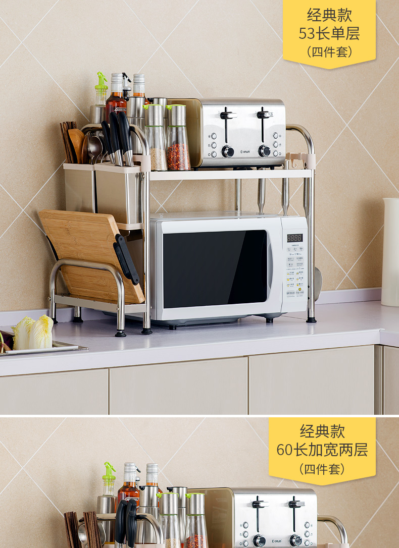 Inox 304 bếp lò vi sóng giá lò nướng dụng cụ nhà bếp gia vị bảng gia vị dao lưu trữ kệ 2 lớp chảo Phòng bếp