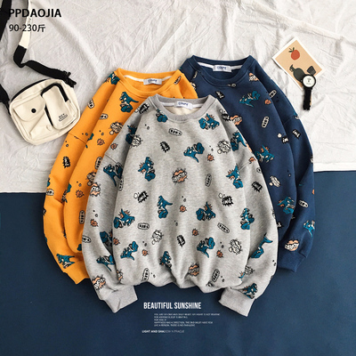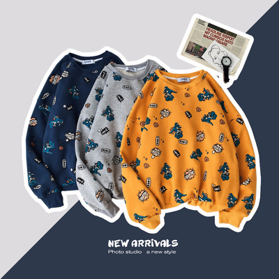 Ins port gió in áo thun nam lỏng lẻo kích thước lớn cặp vợ chồng hip hop dài tay áo xu hướng quần áo nam - Áo len áo khoác nam hoodie