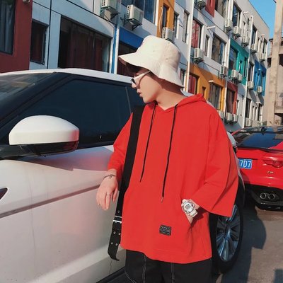 Ins siêu lửa với áo len ngắn tay nam trùm đầu hip hop phiên bản Hàn Quốc của thủy triều T phần mỏng nửa áo đầm trùm đầu áo thun nam mùa hè Áo phông nam hàng hiệu