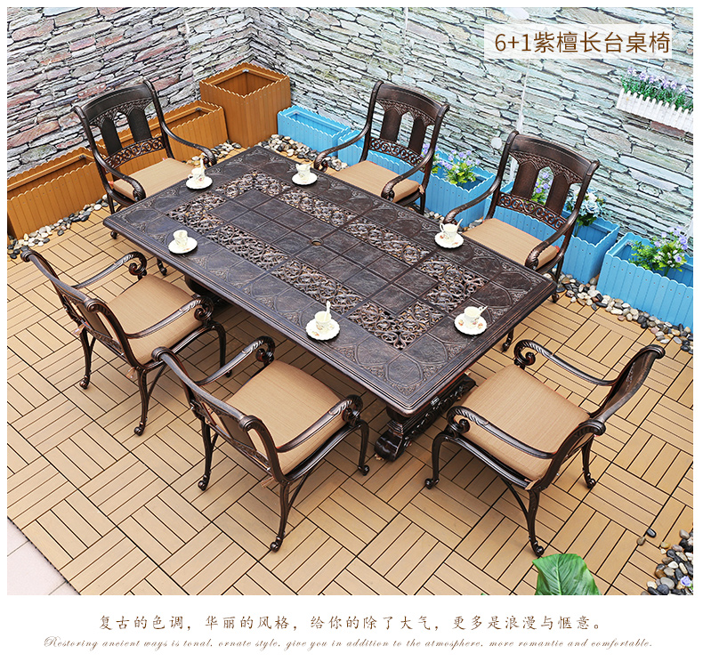 Jialemei đồ gỗ ngoài trời năm mảnh sắt rèn biệt thự kết hợp đồ nội thất đúc nhôm bàn ghế giải trí sân vườn ban công bàn ghế - Bàn ghế ngoài trời / sân bàn ghế ngoài trời giá rẻ