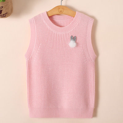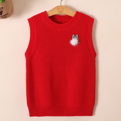 Kaka bò xuân và mùa thu mới màu rắn cổ tròn cô gái lớn trẻ em len áo len áo len vest vest váy trẻ em Áo ghi lê
