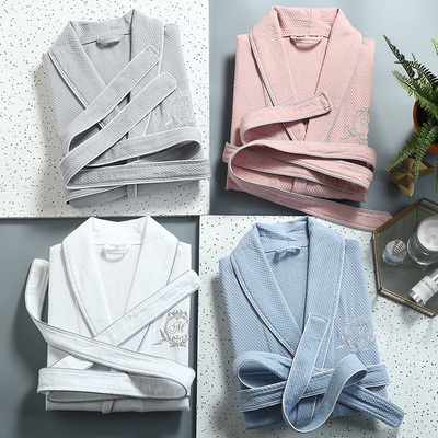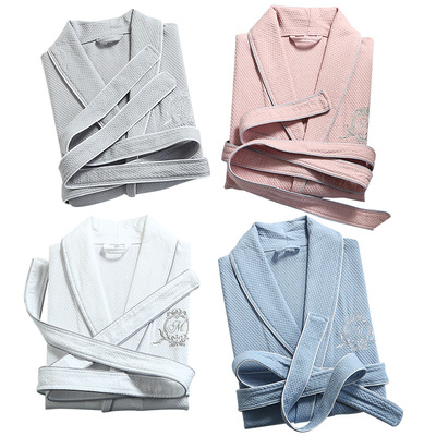 Khách sạn áo choàng tắm áo choàng tắm năm sao nam và nữ mùa hè cotton mỏng phần bánh quế bông thấm nước mềm bộ ngủ pijama