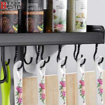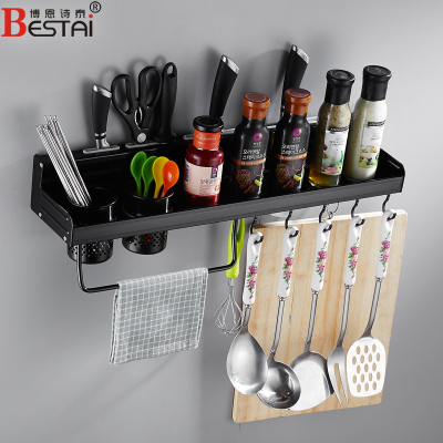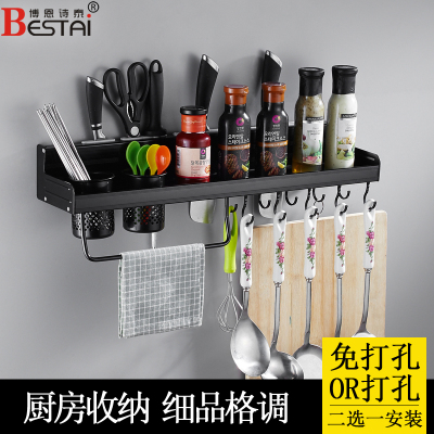 Không gian màu đen nhôm giá bếp gắn tường Miễn phí đột dao giữ nhà bếp cung cấp lưu trữ giá gia vị rack - Phòng bếp vật dụng nhà bếp