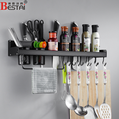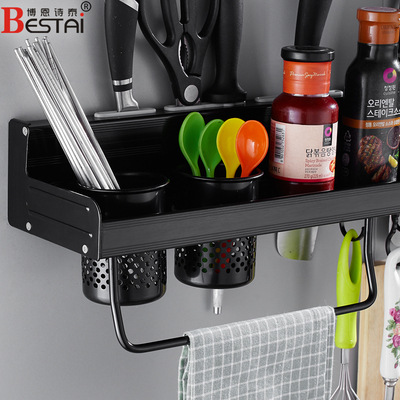Không gian màu đen nhôm giá bếp gắn tường Miễn phí đột dao giữ nhà bếp cung cấp lưu trữ giá gia vị rack - Phòng bếp vật dụng nhà bếp Phòng bếp