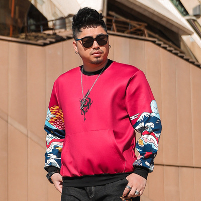Kích thước lớn nam béo nam mùa thu áo khoác lớn màu đỏ cộng với phân bón để tăng chất béo vòng cổ áo thun áo len đáy áo - Áo len áo len dài tay