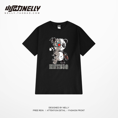 Korea Tide thương hiệu áo thun nam ngắn tay nam và nữ nguyên bản mùa hè cotton đen hoạt hình cặp đôi oversize châu Âu và Mỹ áo thun có cổ nam