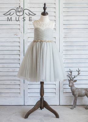Lễ hội MUSE Children Lễ hội Váy cưới Hoa Cô gái Váy Cô gái Net Gạc Váy rhinestone Eo Chuỗi Ren Đường viền cổ áo - Váy trẻ em váy đi tiệc trẻ em đẹp Váy trẻ em
