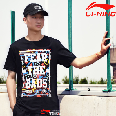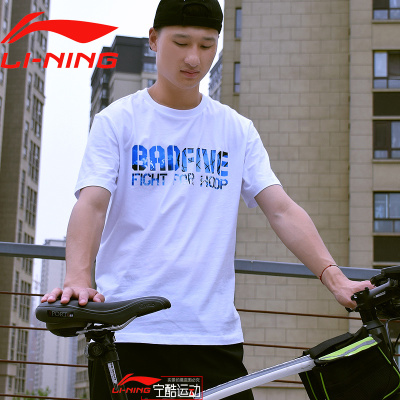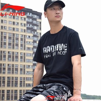 Li Ning áo thun ngắn tay nam 19 mùa hè cổ tròn nửa tay áo rộng đáy áo cotton thoáng khí thấm mồ hôi sinh viên thể thao - Áo phông thể thao áo tank top gym Áo phông thể thao