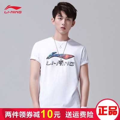 Li Ning áo thun ngắn tay nam 2019 thời trang nam đích thực hàng loạt áo sơ mi logo lớn mùa hè nửa tay - Áo phông thể thao áo ba lỗ nam tập gym Áo phông thể thao