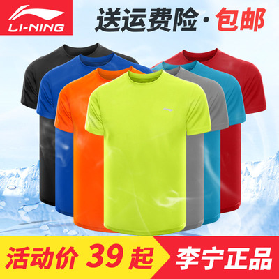 Li Ning áo thun ngắn tay nam mùa hè cổ tròn Mồ hôi tập luyện chạy bộ nhanh khô thường xuyên thoáng khí - Áo phông thể thao áo ba lỗ tập gym
