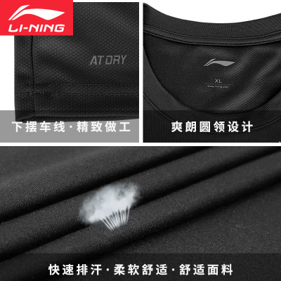 Li Ning áo thun ngắn tay nam mùa hè cổ tròn Mồ hôi tập luyện chạy bộ nhanh khô thường xuyên thoáng khí - Áo phông thể thao áo ba lỗ tập gym Áo phông thể thao