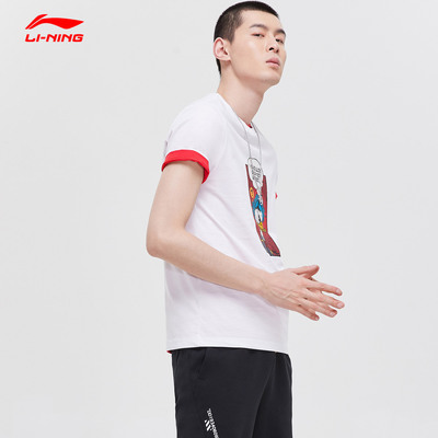 Li Ning Disney Mickey chung tay ngắn tay nam 2019 mới cổ tròn in mùa hè thời trang áo thun giản dị - Áo phông thể thao áo thun thể thao nam có cổ