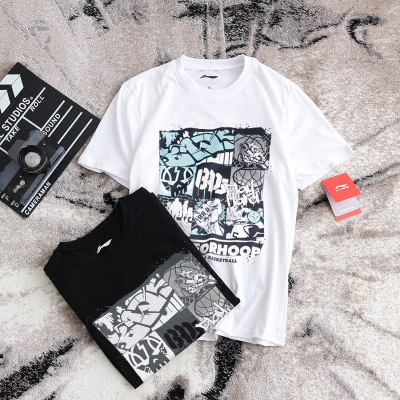 Li Ning thể thao tay áo ngắn nam mùa hè bông Wade Way nam vòng cổ áo thun bóng rổ - Áo phông thể thao áo tank top gym