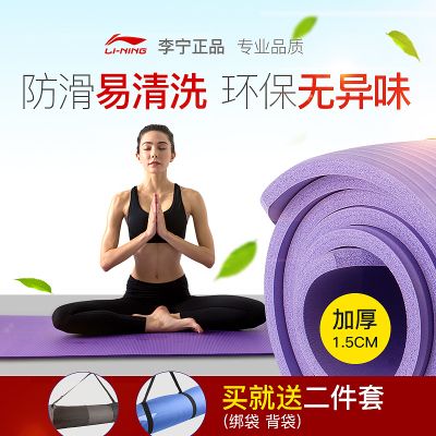 Li Ning Yoga Mat Người mới bắt đầu Tập thể dục cho nam Thể dục Yoga Làm dày Mở rộng Thiết bị trượt dài Thể thao nữ Bộ ba mảnh quan ao tap yoga