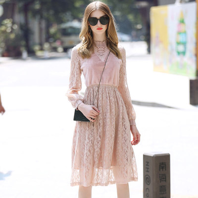 Luojia RMOJUL 2018 mùa thu nữ mới khí chất ren khâu váy dài sang trọng thanh mảnh SW váy trắng trễ vai