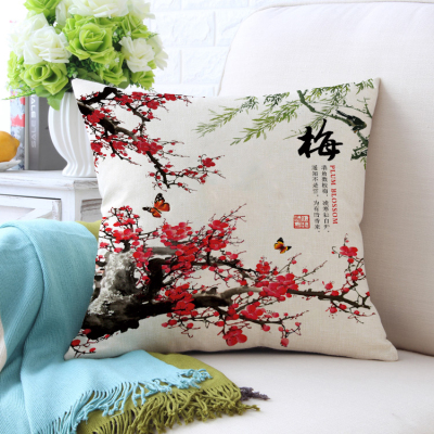 Meilan tre và hoa cúc mực Trung Quốc sofa bông và vải lanh gối phòng trà Trung Quốc gió đệm văn phòng bay gối tựa lưng gối tựa ghế sofa Trở lại đệm / Bolsters