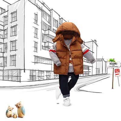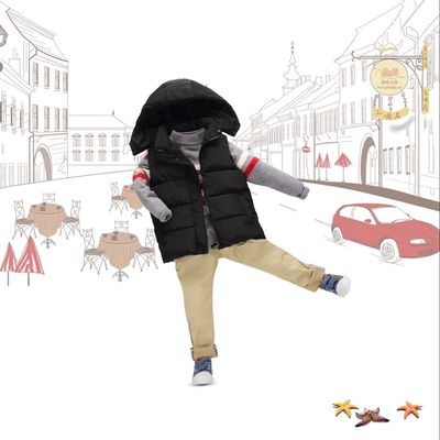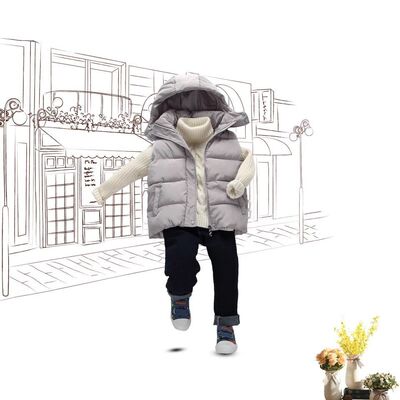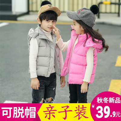 Mới bé gái vest xuống cotton vest bé trai trùm đầu áo khoác vest bé trai lớn có thể tháo rời mũ thủy triều áo gile cotton mềm mại cho bé Áo ghi lê