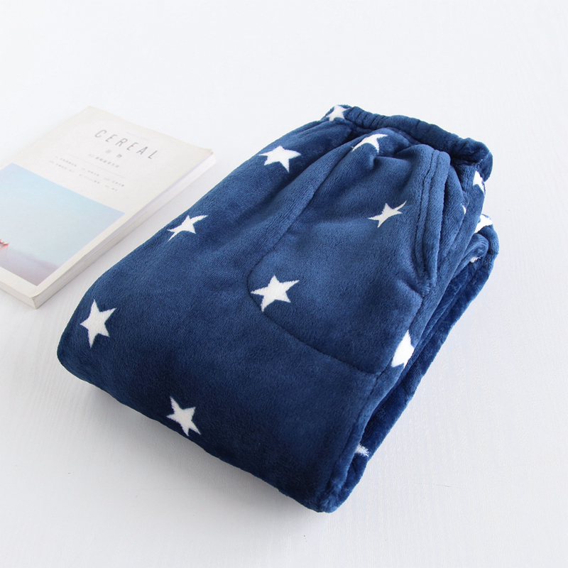 Mới Đàn ông và phụ nữ mẫu đôi Quần ống loe flannel dày Quần dịch vụ tại nhà Dịch vụ rộng rãi thun đôi túi 12-1 quần đũi nam