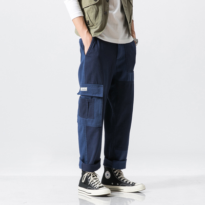 Một chiếc quần dài nguyên bản của quân đội retro Nhật Bản khâu màu tương phản dụng cụ thường xuyên quần lớn bỏ túi quần thẳng quần bò nam đẹp