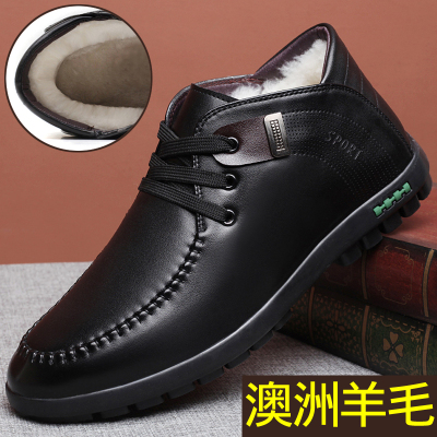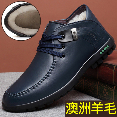 Mùa đông da len kinh doanh giày cotton thông thường giày nam dày ấm cao giày nam Anh cộng với giày nhung chống trơn giày thể thao