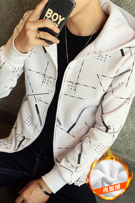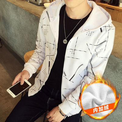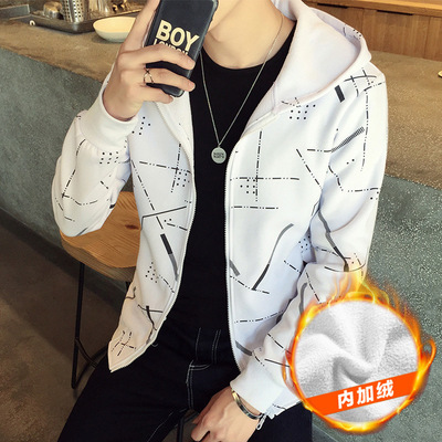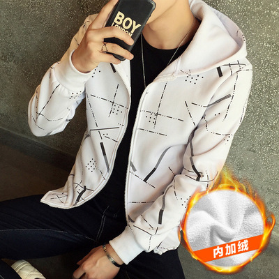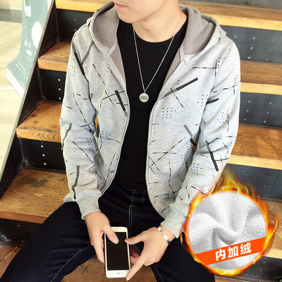 Mùa đông dày cộng với áo len trùm đầu nhung nam mùa thu và mùa đông học sinh trung học mùa đông áo khoác ngoài áo khoác thủy triều - Áo len hoodie nỉ