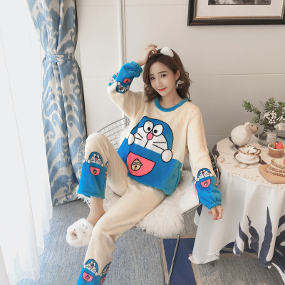 Mùa đông flannel đồ ngủ nữ phim hoạt hình Doraemon dễ thương jingle mèo dày san hô lông cừu đồ ngủ cô gái phù hợp với shop quần áo nữ