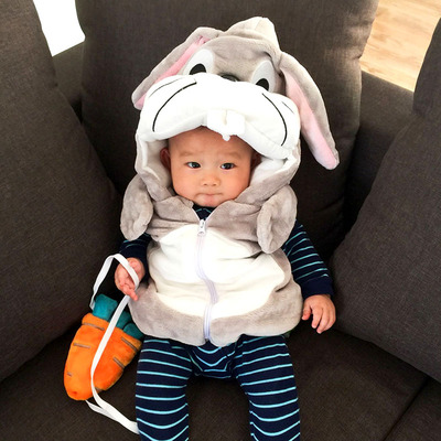 Mùa đông mới chần bé trai và bé gái vest vest Bunny Bugs áo trùm đầu ấm áp áo khoác phim hoạt hình áo gile hàn Áo ghi lê