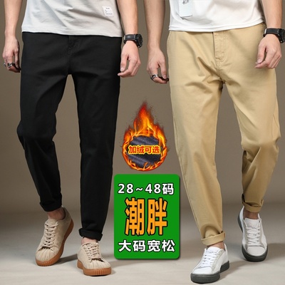 Mùa đông nam kéo dài kinh doanh quần âu cộng với phân bón XL lỏng quần thủy triều chân béo quần áo nam cộng nhung quần kaki nam đẹp Quần mỏng
