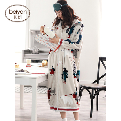 Mùa đông nhung san hô nhung nữ đồ ngủ Phiên bản Hàn Quốc của áo dài kích thước lớn áo choàng hoạt hình cô gái áo choàng ấm flannel đồ bộ pijama Night Robe