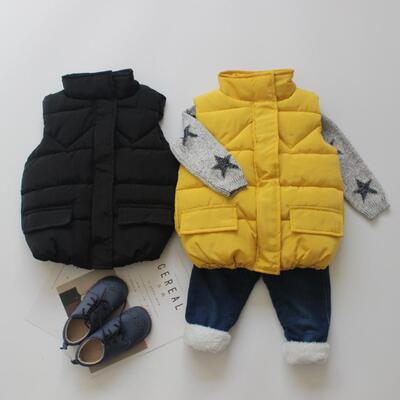 Mùa đông phiên bản Hàn Quốc mới của nam và nữ trẻ em bé dày ấm đứng cổ áo cotton trẻ em thủy triều rộng áo gile cho bé Áo ghi lê