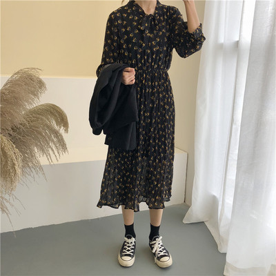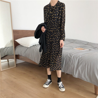 Mùa hè 2018 phiên bản Hàn Quốc mới của áo sơ mi ren tay hoa họa tiết nữ midi voan mỏng mẫu váy nhung đẹp váy đầm