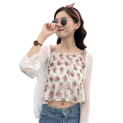 Mùa hè ăn mặc của phụ nữ Hàn Quốc phiên bản của nhỏ tươi Mỏng hoang dã mỏng ngắn voan hoa sling bên ngoài mặc vest + khăn choàng quần áo thời trang nữ Áo ba lỗ