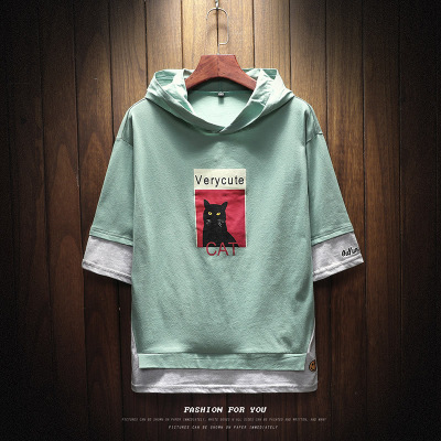 Mùa hè chất béo tay áo bảy điểm quần áo nam cộng với chất béo tay áo kích thước lớn Áo thun phiên bản Hàn Quốc của áo trùm đầu ngắn tay áo thủy triều quần áo nam - Áo phông ngắn Mẫu áo phông nam đẹp 2019 Áo phông ngắn