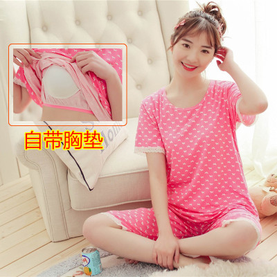 Mùa hè đồ ngủ cotton mới của phụ nữ mùa hè với miếng đệm ngực miễn phí mặc áo ngực nữ ngắn tay mùa hè phù hợp với dịch vụ nhà quần áo ngủ nữ