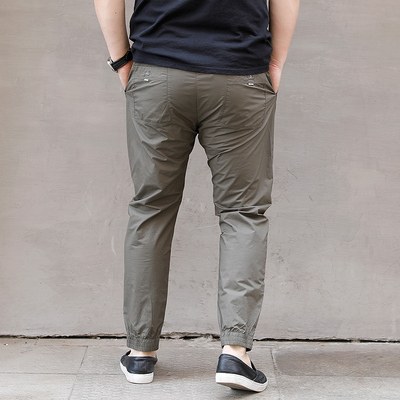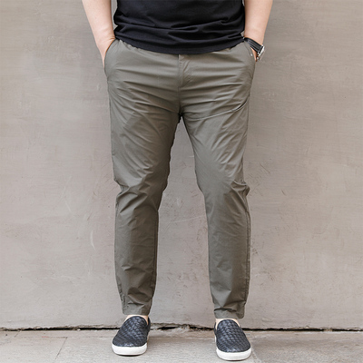 Mùa hè mới chất liệu mỏng quân đội xanh thủy triều béo nửa miệng nhỏ chân căng lớn cộng với phân bón XL quần âu quần ống suông nam Quần mỏng