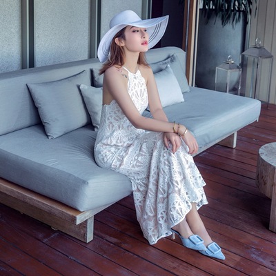 Mùa hè mới đi biển phong cách phụ nữ treo cổ váy quây ren gợi cảm Váy dài Bali - váy đầm giá váy maxi váy đầm