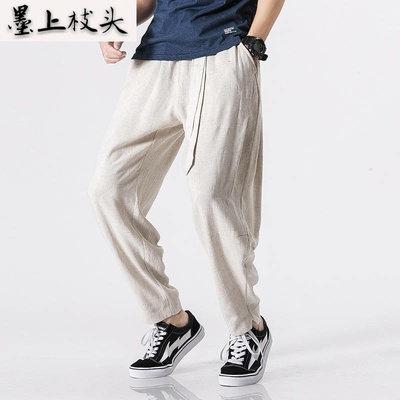 Mùa hè quần mỏng phần vải lanh nam kích thước lớn chân lỏng quần harem phong cách Trung Quốc nam giản dị Lantern dài quần - Quần mỏng quần âu nam