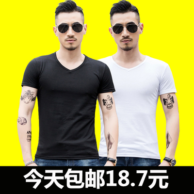 Mùa hè rắn màu v-cổ nam áo thun ngắn tay Đầm cotton bó sát nửa tay màu đen nguyên chất màu trắng tinh khiết 桖 áo phông trắng nam