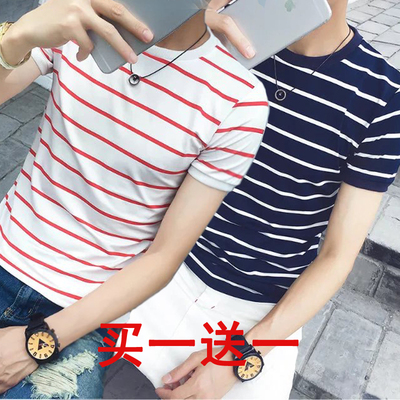 Mua một tặng một người đàn ông tay đỏ miễn phí với áo thun nam tay ngắn tinh thần anh chàng xã hội nửa tay áo sọc mỏng áo thun pierre cardin Áo phông ngắn