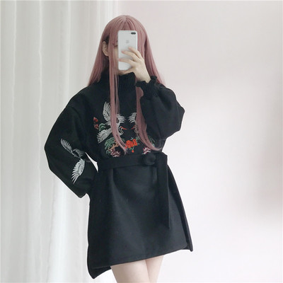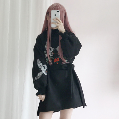 Mùa thu đông của phụ nữ phiên bản Hàn Quốc cộng với nhung dày ngọt ngào buông eo dài tay áo dài váy sinh viên váy cho người béo