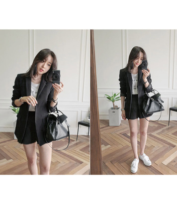 Mùa thu giản dị phù hợp với phụ nữ dài màu đen kinh doanh mặc quần áo công sở áo khoác cô gái áo khoác váy quần áo nữ đẹp Business Suit