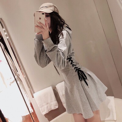 Mùa thu mới Hàn Quốc thời trang gió sang trọng cẩn thận dây đai thắt lưng dài tay áo liền thân màu áo len nữ áo đầm trung niên