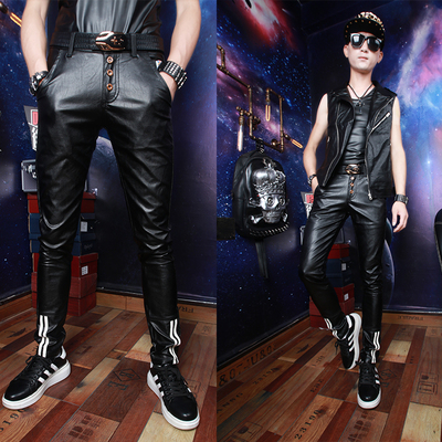 Mùa thu và đêm đông shop quần da nam bó sát tóc stylist guys quần mỏng chân chống quần da nam quần cá tính quần dài nam
