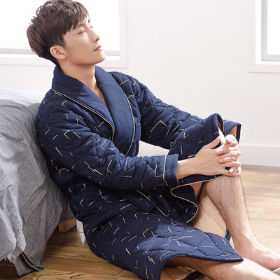 Mùa thu và mùa đông áo choàng tắm nam dày đồ ngủ ấm áp cotton bông áo choàng dài phần XL áo choàng tắm cotton nam đồ ngủ thu đông nam nữ Night Robe