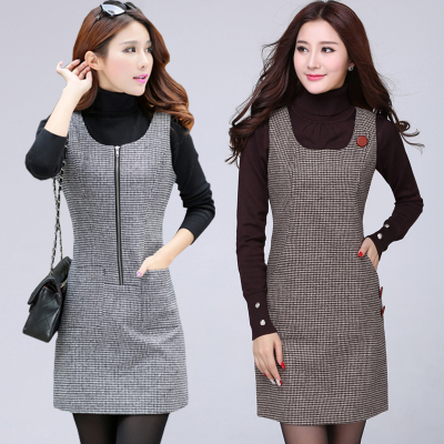 Mùa thu và mùa đông áo len mỏng vest vest kẻ sọc váy không tay vest đáy váy váy thủy triều váy yếm váy đầm